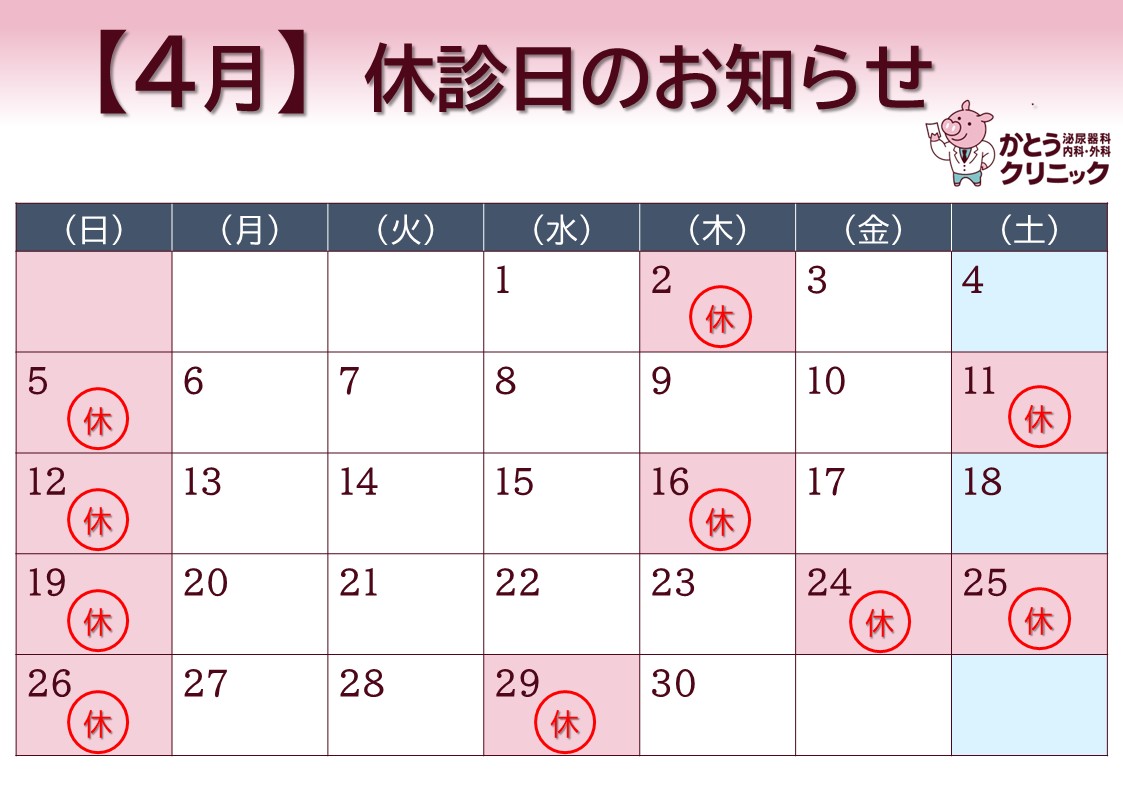 休診日のお知らせ(2026年2月・3月・4月)