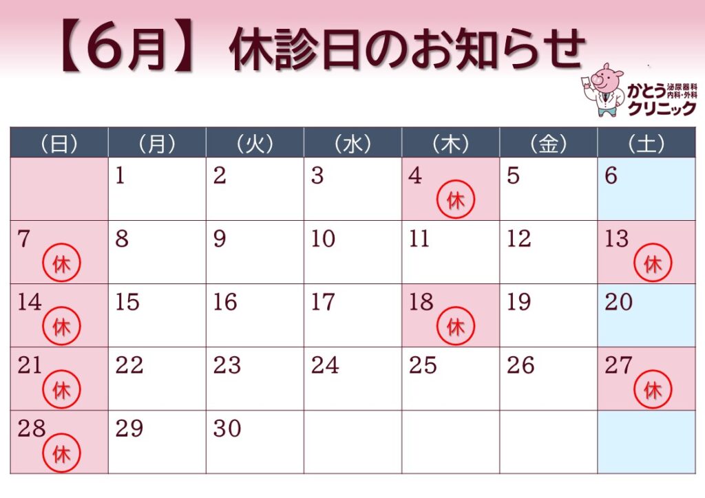 ■ 6月の休診日 13(土)、27(土)