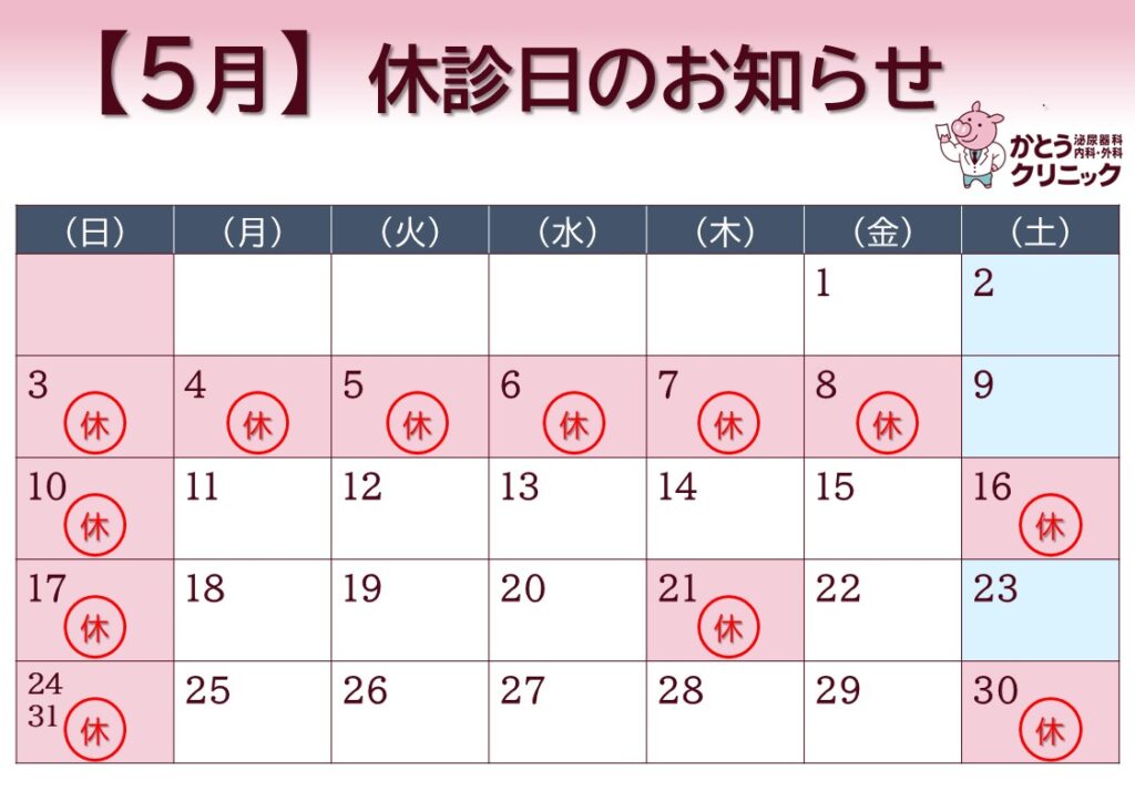 ■ 5月の休診日 8(金)、16(土)、30(土)